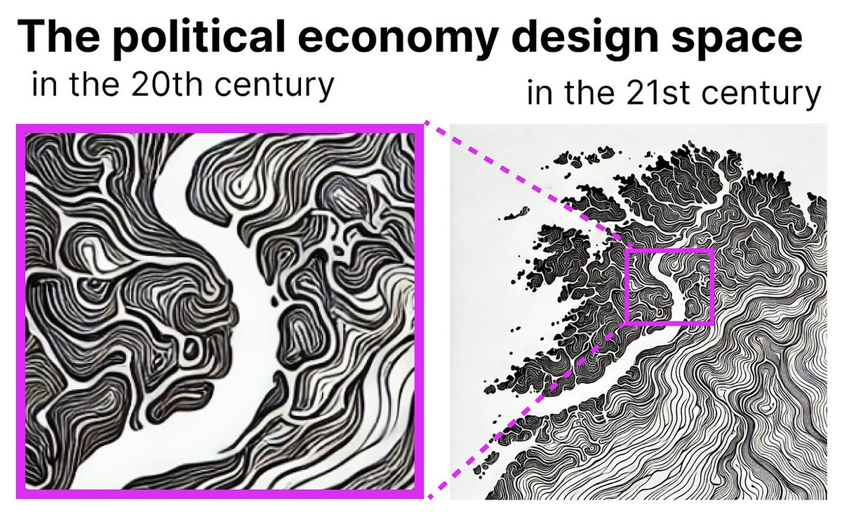 The constraints of our existing institutions dramatically limit the possibilities we can imagine and implement. By leveraging programmable trust infrastructure like Ethereum, and AI for larger context, we can expand the design space for coordination by orders of magnitude.
